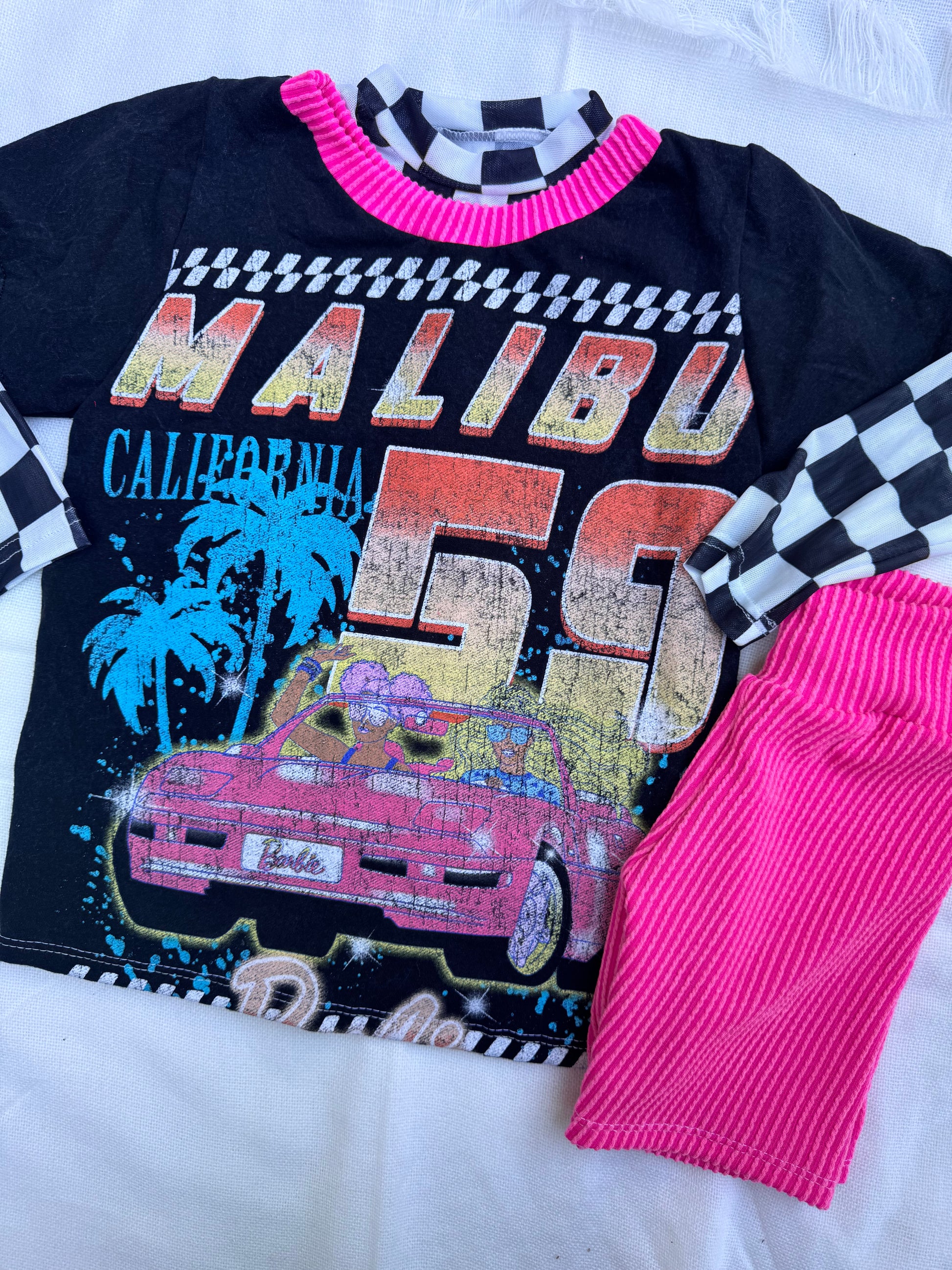 3 pieces included. Top, mesh top, biker shorts.