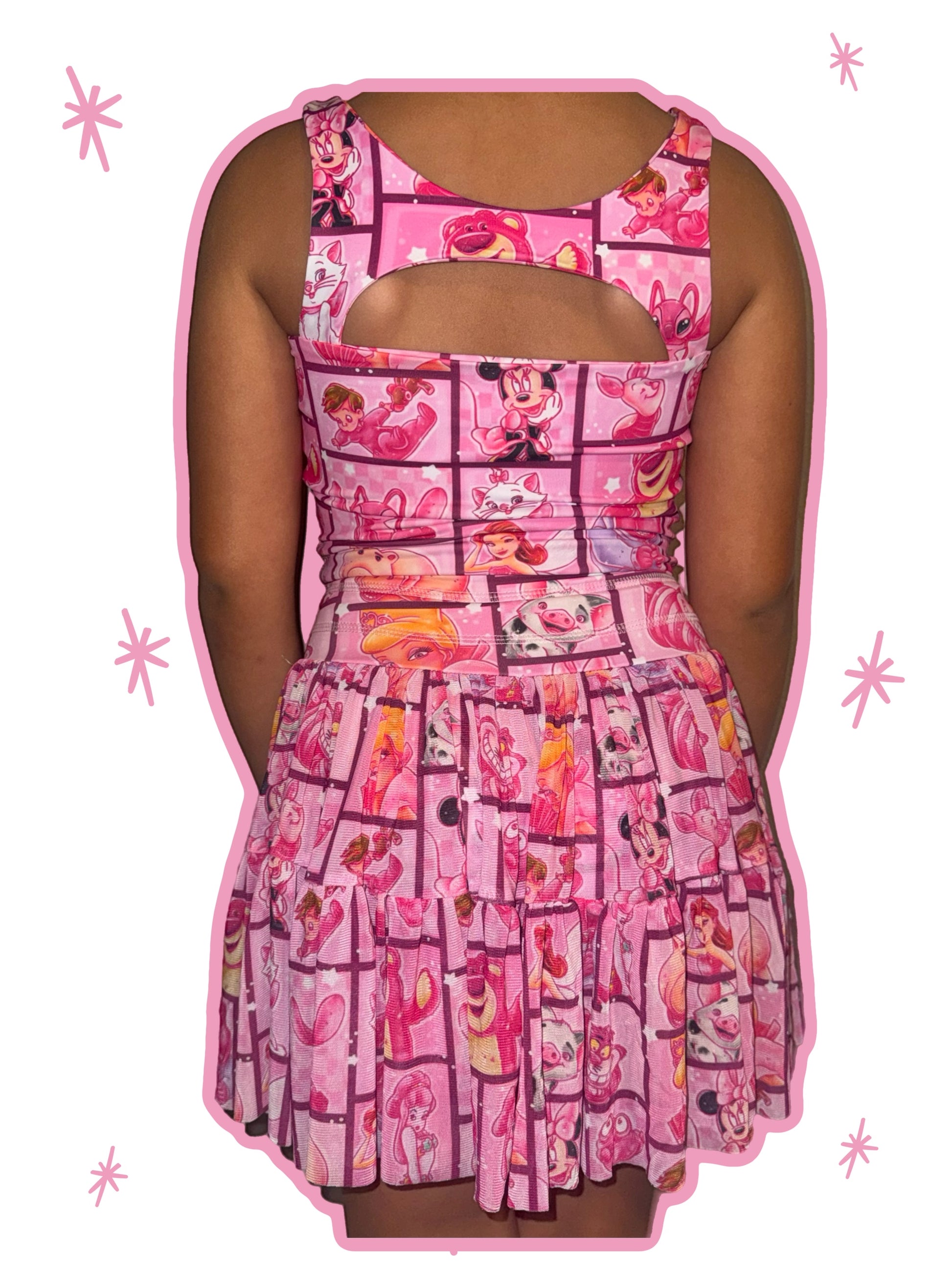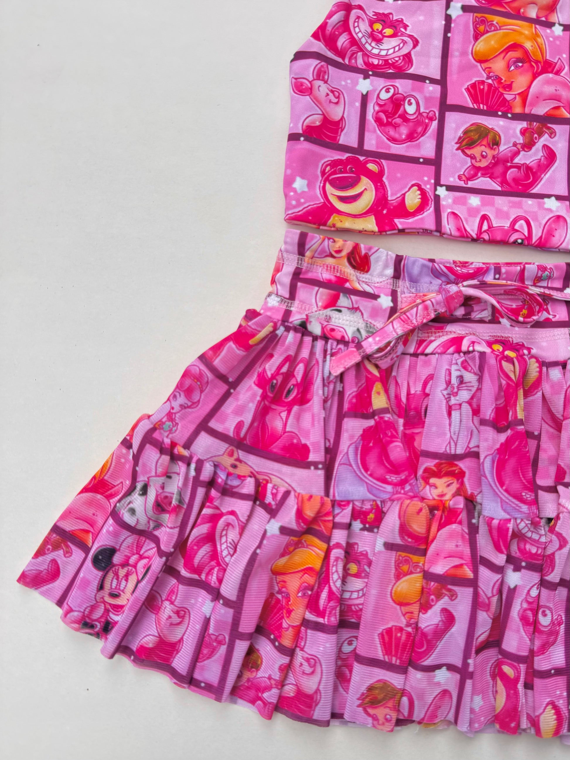 Mesh skort with shorts underneath, and functional drawstring.